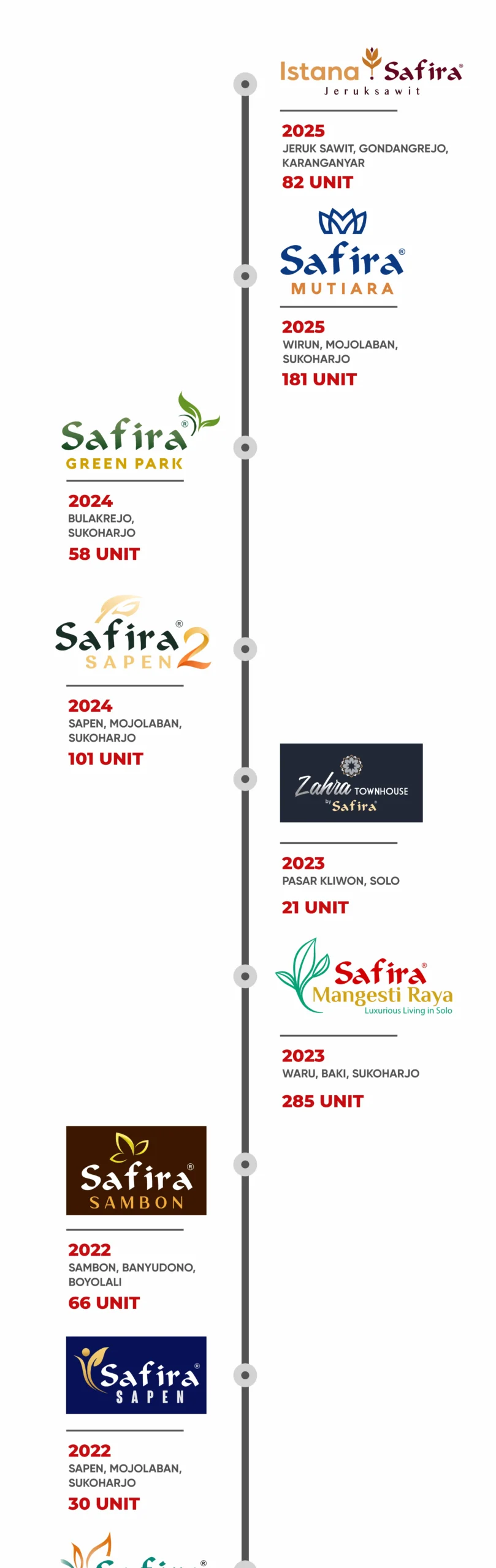 Pengembang Terpercaya di Surakarta, Safira Grup berfokus pada pengembangan properti perumahan yang Aman dan Nyaman. Safira Grup memberikan nilai tambah kepada konsumen, berupa kemudahan dalam pilihan kostumisasi desain, struktur dan denah. Dukungan 15 Bank Terkemuka menunjukan tingkat kepercayaan lembaga keuangan nasional atas kredibilitas Safira Grup dalam merealisasikan komitmen kepada pelanggan.